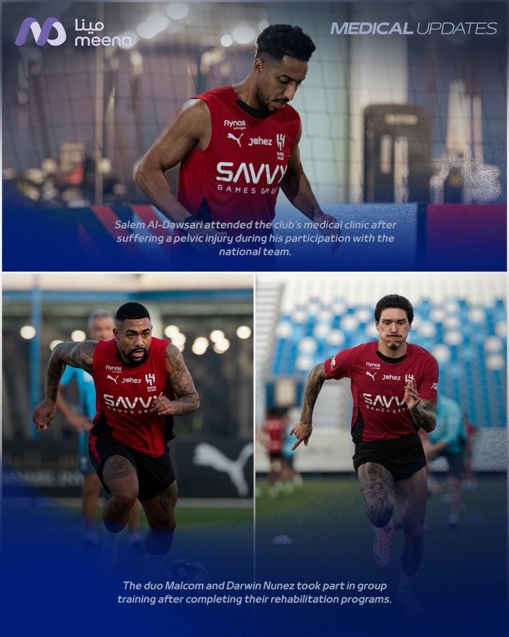 努涅斯和马尔科姆还是康复,至本日追究转头进入利雅得眉月的合练