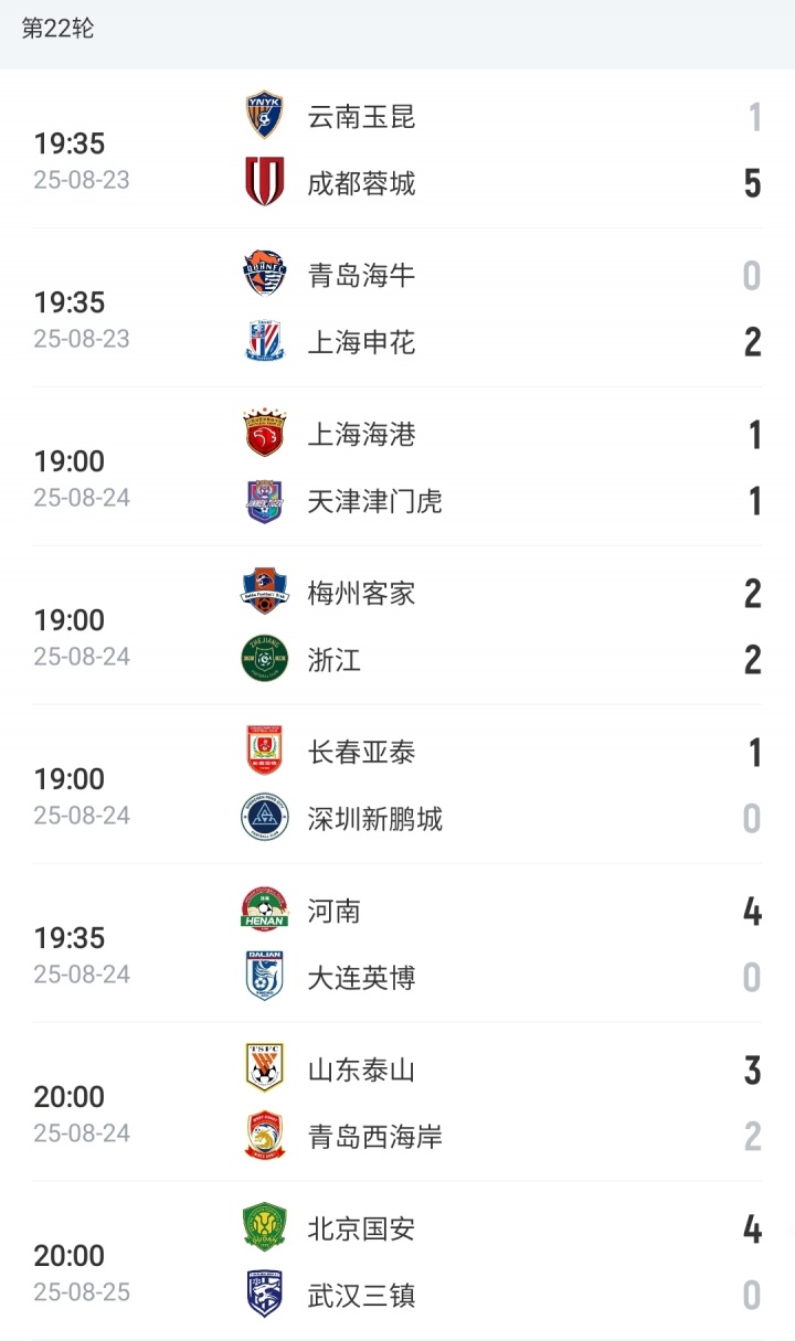 本轮赛果