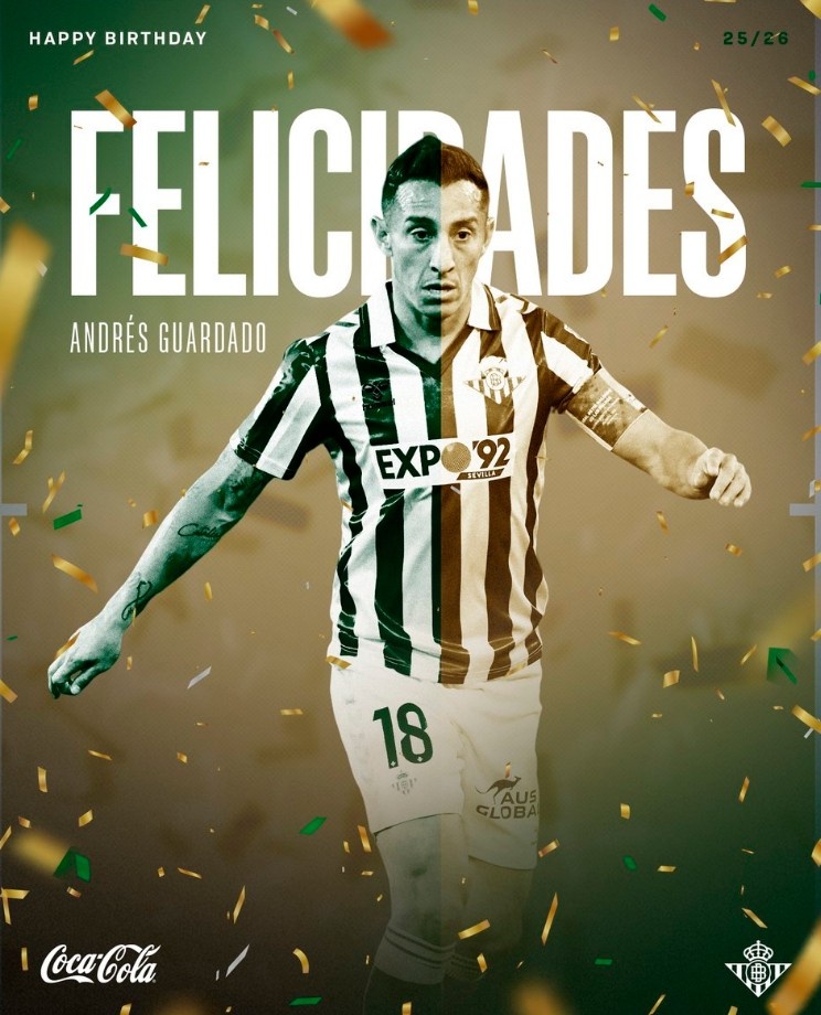9月28日讯 今天是贝蒂斯名宿瓜尔达多39岁生辰,球队官推也晒出海报为其奉上生辰道喜。