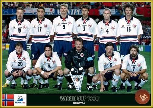 1998年宇宙杯,挪威阵中有索尔斯克亚(图中20号)