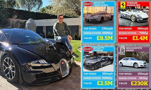 最爱布加迪🤯邮报清点C罗豪车:单辆850万镑、320万镑、200万镑