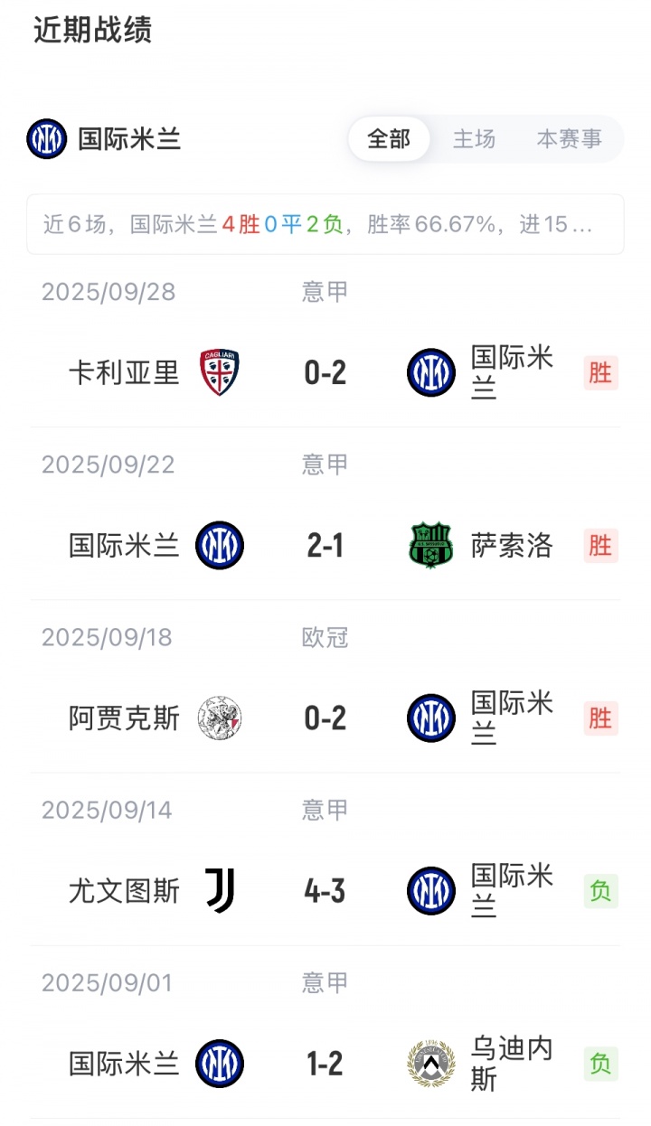 海外米兰首发:1-索默、15-阿切尔比、31-比塞克、32-迪马尔科、95-巴斯托尼、2-邓弗里斯、7-泽林斯基、8-苏西奇、20-恰尔汗奥卢、9-图拉姆、10-劳塔罗