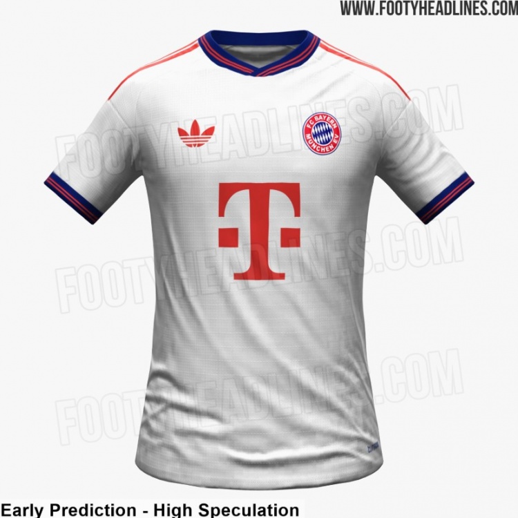 外媒显露拜仁26/27赛季客场球衣:白色主颜色,EV队徽回来