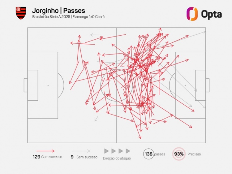 据Opta统计,若日尼奥本场比赛告捷传球129次,本赛季巴甲单场告捷传球第二多,仅次于若日尼奥我方对阵维多利亚一役的132次告捷传球。