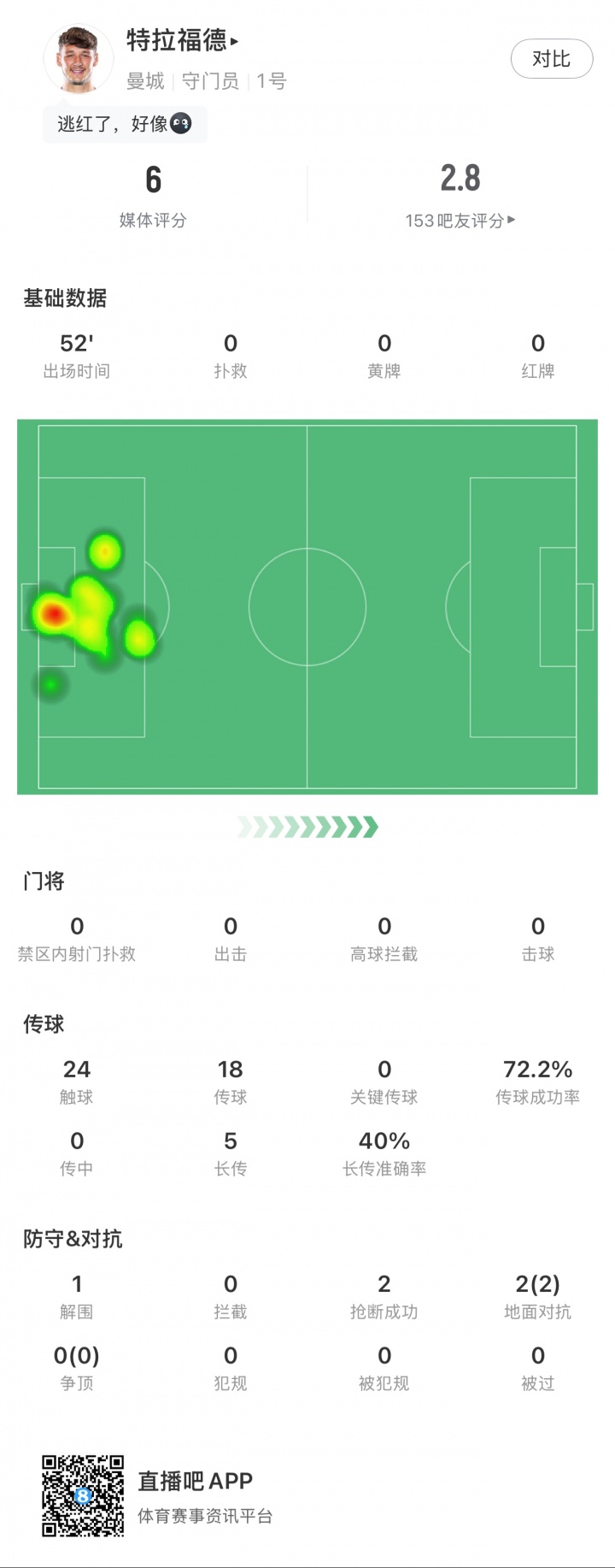 08月23日讯 英超第二轮焦点战,曼城主场0-2过期热刺,22岁门将特拉福德发扬倒霉,0次扑救!
