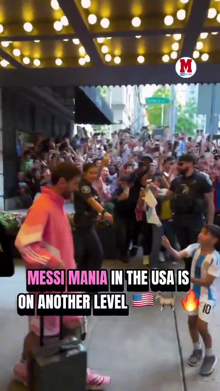 《马卡报》社媒晒出视频,繁密球迷在栈房外等候梅西,并高喊他的名字,《马卡报》配文:“好意思国为梅西放肆。”