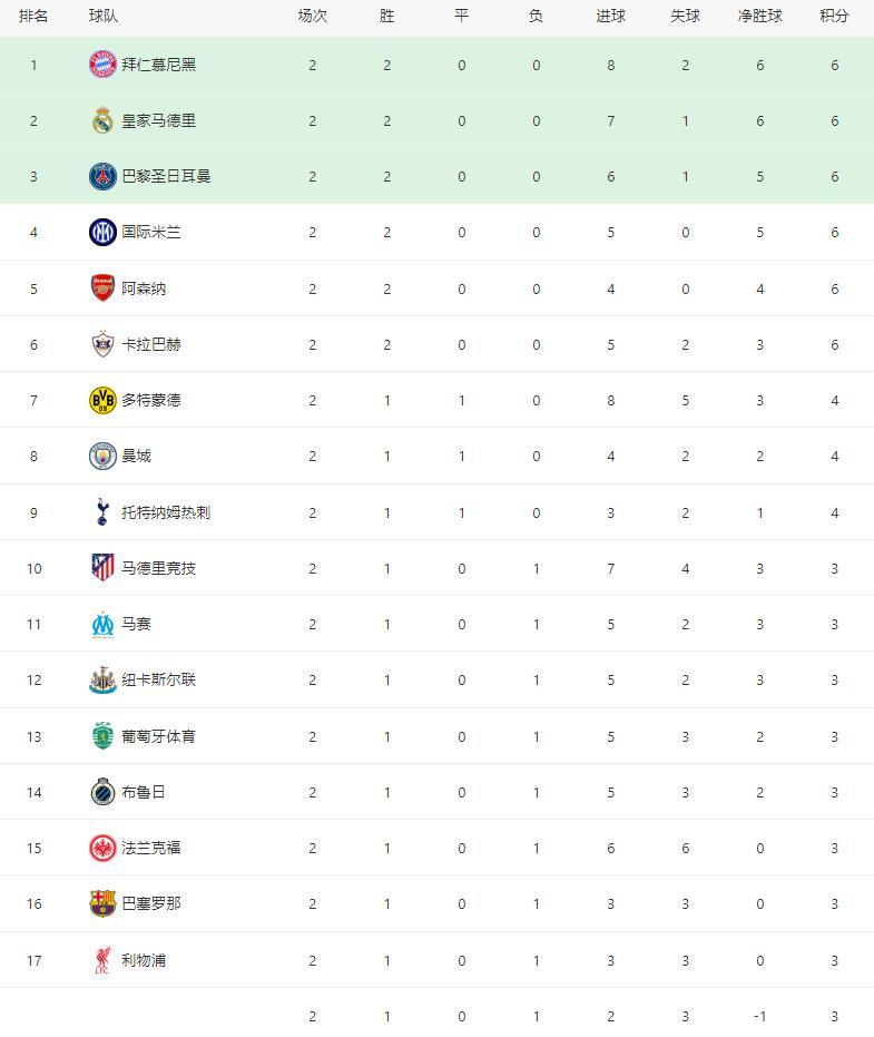 跟着巴黎2-1绝杀巴萨, 曼城2-2遭绝平, 欧冠最新积分榜: 拜仁领跑