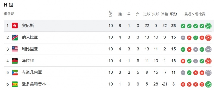 突尼斯早在第8轮就依然锁定小组第一提前晋级寰球杯,他们是曲洲区第二支晋级的队伍。