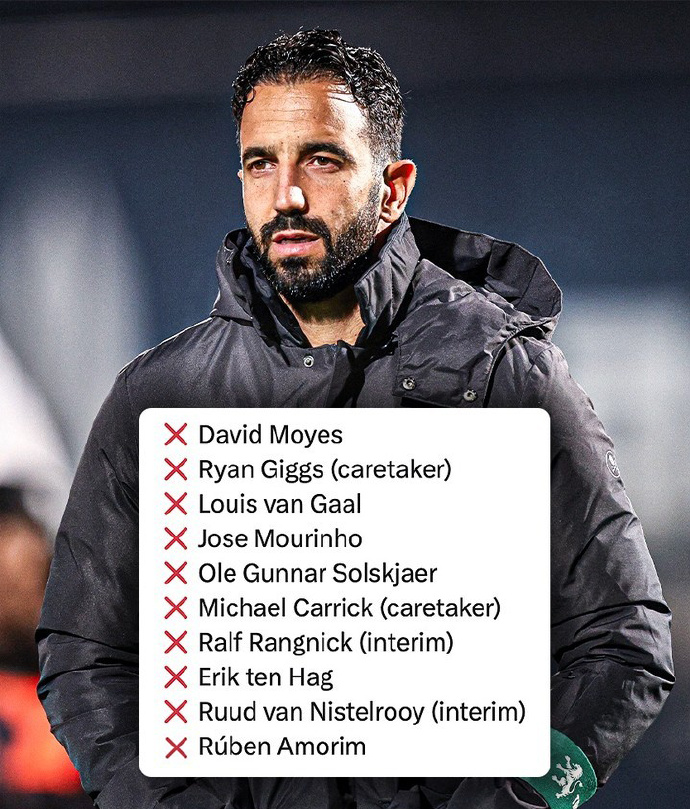 莫耶斯、吉格斯、范加尔、穆里尼奥、索尔斯克亚、卡里克、朗尼克、滕哈格、范尼斯特鲁伊、阿莫林先其后到梦戏院,但齐莫得获取长久的告捷。