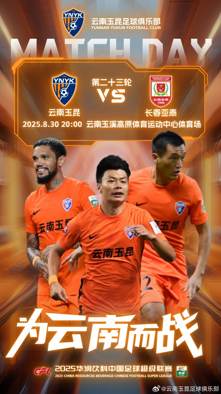 08月30日讯 北京时辰今晚20点,中超第23轮,云南玉昆主场迎战长春亚泰,赛前两边公布首发威望。