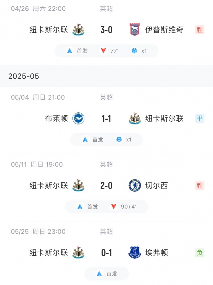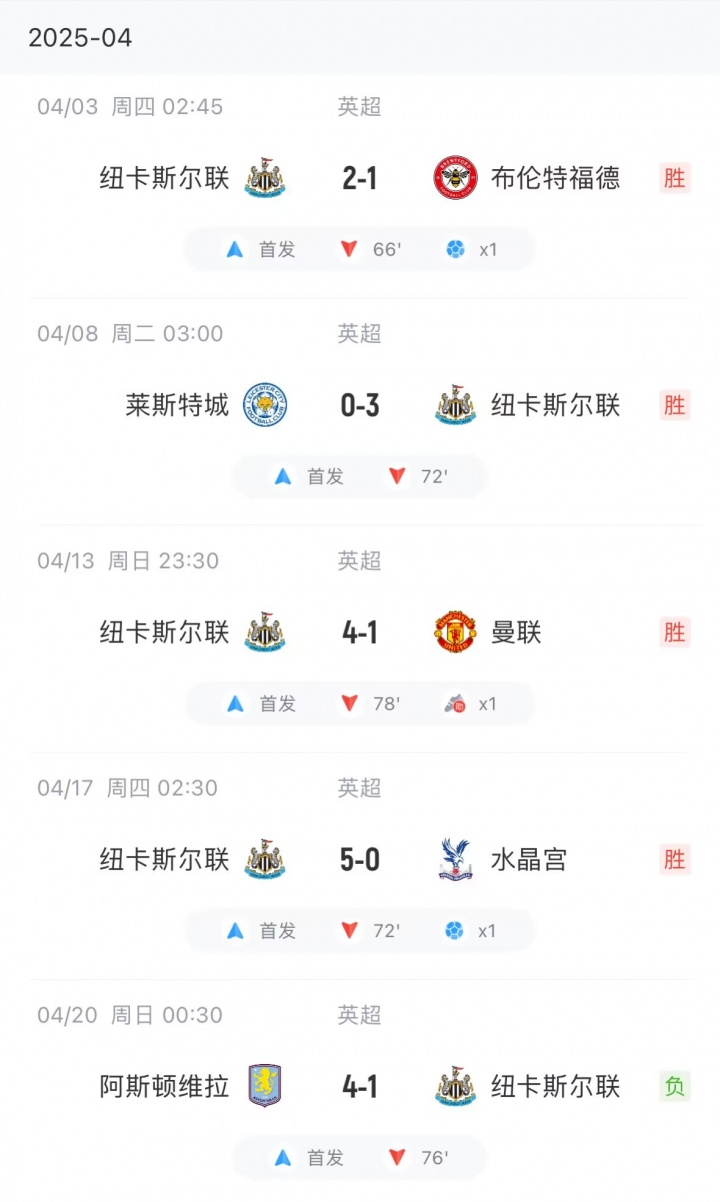 伊萨克自四月起为纽卡出战了9场比赛,孝顺4球1助。