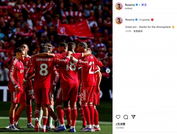维尔茨也在赛后通过社媒晒出了全队庆祝照,并配文:“+3分!伟大的得手!感谢主场横暴的氛围。”