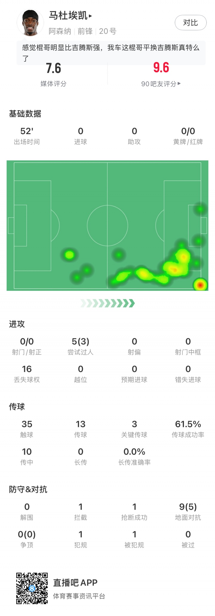 立棍单打!马杜埃凯半场进展历害,3次过东谈主顺利评分7.6队内最高!