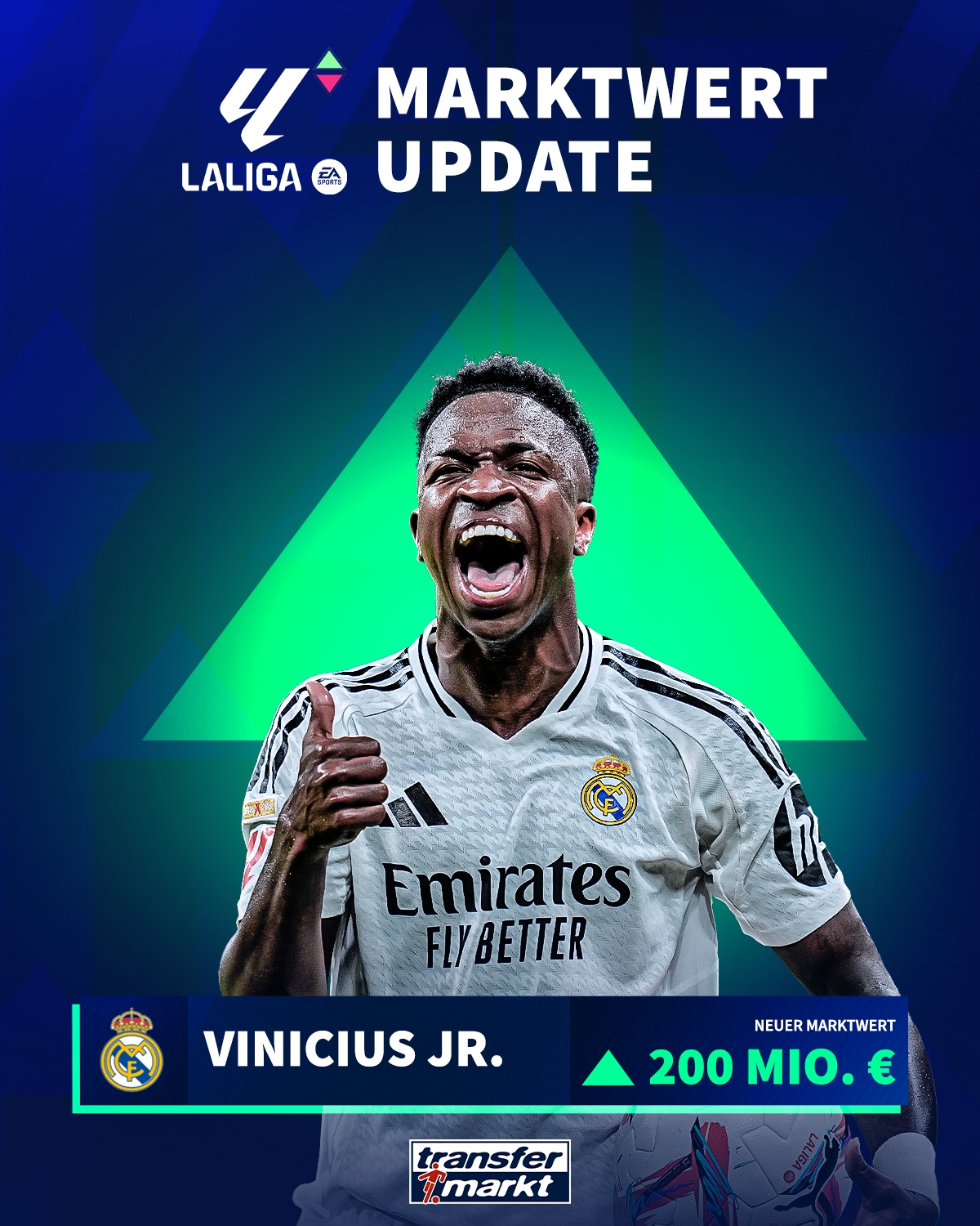 在昨年10月,维尼修斯才刚刚来到2亿欧的糊口最高身价,而且一度与哈兰德比肩天下第独处价。