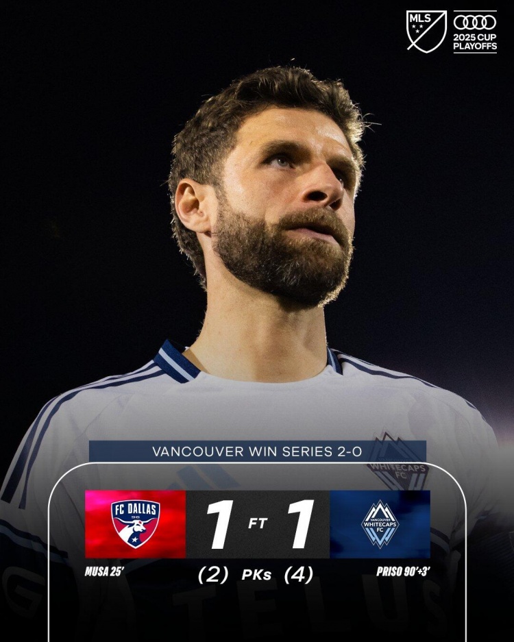 11月2日讯 在好意思职联季后赛第二场,温哥华白浪1-1战平达拉斯FC,历程点球大战温哥华白浪4-2见效晋级下一轮。