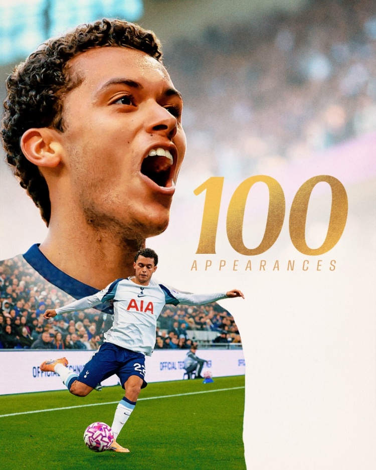 布伦南-约翰逊完毕热刺百场里程碑,俱乐部社媒晒海报祝福