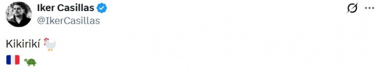 皇马名宿卡西利亚斯也在社媒发文惊奇姆巴佩献艺帽子戏法的速率,配文:“Kikirikí”